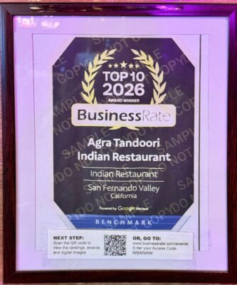 Alhamdulillah! We are proud to announce that Agra Tandoori Indian Restaurant has been recognized as a Top 10 Indian Restaurant in San Fernando Valley, California (2026) 🎉